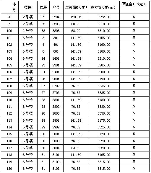 一、拍賣標的:坐落于瀘州市江陽區(qū)華陽街道學院西路372號“佳興茗苑”小區(qū)第一批次住房。(詳見房屋清單)